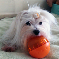 パピー期を過ぎてからはそれを小さな穴の開いたIQボールに詰めて