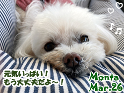 おかげさまで、もんたも元気いっぱい走り回っています(^^)